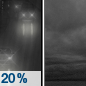 Temperature: 52°F Wind Speed: 5 mph Wind Direction: S Forecast: A slight chance of rain. Cloudy, with a low around 52. South wind around 5 mph. Chance of precipitation is 20%. |