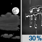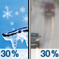 Forecast: A chance of freezing rain after 1am. Partly cloudy, with a low around 27. Chance of precipitation is 30%.