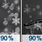 Temperature: 9°F Wind Speed: 5 to 10 mph Wind Direction: NNE Forecast: Snow and a slight chance of sleet. Cloudy, with a low around 9. Wind chill values as low as -1. North northeast wind 5 to 10 mph. Chance of precipitation is 100%. New snow accumulation of 2 to 4 inches possible. |
