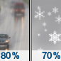 Temperature: 10°F Wind Speed: 7 mph Wind Direction: S Forecast: Snow likely after 8pm. Mostly cloudy, with a low around 10. Chance of precipitation is 60%. |