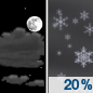 Temperature: 15°F Wind Speed: 5 mph Wind Direction: W Forecast: Isolated snow showers after 3am. Partly cloudy, with a low around 15. |