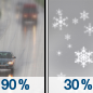 Temperature: 37°F Wind Speed: 14 to 30 mph Wind Direction: W Forecast: Rain likely before 9am, then a chance of snow. Mostly cloudy. High near 37, with temperatures falling to around 12 in the afternoon. Wind chill values as low as -10. West wind 14 to 30 mph, with gusts as high as 41 mph. Chance of precipitation is 90%. New snow accumulation of less than half an inch possible. |