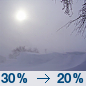 Temperature: 20°F Wind Speed: 5 to 20 mph Wind Direction: NW Forecast: A chance of snow showers and patchy blowing snow before 1pm. Partly sunny, with a high near 20. Wind chill values as low as -7. Northwest wind 5 to 20 mph, with gusts as high as 35 mph. Chance of precipitation is 30%. New snow accumulation of less than half an inch possible. |