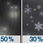 Temperature: 4°F Wind Speed: 6 mph Wind Direction: ENE Forecast: A slight chance of snow before midnight. Partly cloudy, with a low around 4. Chance of precipitation is 20%. |