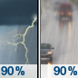 Temperature: 48°F Wind Speed: 15 mph Wind Direction: SSW Forecast: Showers and thunderstorms before 7pm, then rain. Mostly cloudy, with a low around 48. South southwest wind around 15 mph, with gusts as high as 35 mph. Chance of precipitation is 90%. New rainfall amounts between a tenth and quarter of an inch possible. |