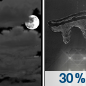 Temperature: 40°F Wind Speed: 10 mph Wind Direction: W Forecast: A chance of rain. Mostly cloudy, with a low around 40. Chance of precipitation is 30%. |