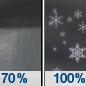 Temperature: 22°F Wind Speed: 15 mph Wind Direction: SW Forecast: Rain and snow. Mostly cloudy, with a low around 22. New snow accumulation of 1 to 3 inches possible. |