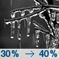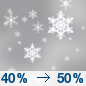 Temperature: 33°F Wind Speed: 7 to 10 mph Wind Direction: W Forecast: A chance of snow. Mostly cloudy, with a high near 33. Chance of precipitation is 30%. |