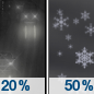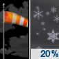 Temperature: 34°F Wind Speed: 17 mph Wind Direction: WSW Forecast: A chance of rain and snow. Mostly cloudy, with a low around 34. |