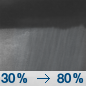 Temperature: 46°F Wind Speed: 9 to 22 mph Wind Direction: S Forecast: Rain showers after 7pm. Mostly cloudy. Low around 46, with temperatures rising to around 51 overnight. Chance of precipitation is 80%. New rainfall amounts between a quarter and half of an inch possible. |