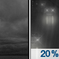 Temperature: 43°F Wind Speed: 0 mph Wind Direction: Forecast: A slight chance of rain after midnight. Cloudy, with a low around 43. Southeast wind around 0 mph. Chance of precipitation is 20%. |