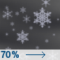 Temperature: 8°F Wind Speed: 7 to 10 mph Wind Direction: NW Forecast: Snow likely before 11pm, then a chance of snow showers between 11pm and 4am. Mostly cloudy, with a low around 8. Wind chill values as low as -3. Northwest wind 7 to 10 mph. Chance of precipitation is 70%. New snow accumulation of less than one inch possible. |