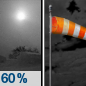 Temperature: 33°F Wind Speed: 2 to 7 mph Wind Direction: S Forecast: Rain likely after 7pm. Mostly cloudy, with a low around 33. Chance of precipitation is 60%. |