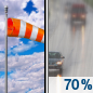 Temperature: 50°F Wind Speed: 14 to 21 mph Wind Direction: S Forecast: Rain likely after noon. Partly sunny, with a high near 50. South wind 14 to 21 mph, with gusts as high as 40 mph. Chance of precipitation is 70%. New rainfall amounts less than a tenth of an inch possible. |
