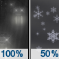 Temperature: 35°F Wind Speed: 8 to 12 mph Wind Direction: W Forecast: A slight chance of rain and snow before 7am. Partly sunny, with a high near 35. |
