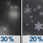 Temperature: 18°F Wind Speed: 10 to 15 mph Wind Direction: SW Forecast: A chance of rain before 2am, then a slight chance of snow. Mostly cloudy, with a low around 18. Southwest wind 10 to 15 mph, with gusts as high as 25 mph. Chance of precipitation is 30%. |