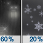 Temperature: 53°F Wind Speed: 0 mph Wind Direction: Forecast: A slight chance of rain and snow before 4pm. Mostly sunny, with a high near 53. West southwest wind around 0 mph. Chance of precipitation is 20%. |
