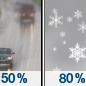Temperature: 48°F Wind Speed: 9 to 15 mph Wind Direction: S Forecast: A chance of rain before 2pm, then a chance of rain and snow between 2pm and 5pm, then rain and snow. Mostly cloudy. High near 48, with temperatures falling to around 44 in the afternoon. South wind 9 to 15 mph. Chance of precipitation is 80%. |