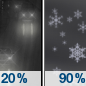 Temperature: 30°F Wind Speed: 10 to 18 mph Wind Direction: NW Forecast: Snow likely before 8am. Mostly sunny. High near 30, with temperatures falling to around 22 in the afternoon. Northwest wind 10 to 18 mph, with gusts as high as 36 mph. Chance of precipitation is 60%. New snow accumulation of 1 to 3 inches possible. |