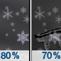 Temperature: 32°F Wind Speed: 10 to 20 mph Wind Direction: W Forecast: Snow likely before noon, then snow and patchy blowing snow. Mostly cloudy. High near 32, with temperatures falling to around 8 in the afternoon. West wind 10 to 20 mph, with gusts as high as 35 mph. Chance of precipitation is 80%. New snow accumulation of 1 to 3 inches possible. |