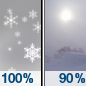 Temperature: 14°F Wind Speed: 8 to 16 mph Wind Direction: W Forecast: Snow likely before 4am. Mostly cloudy, with a low around 14. West wind 8 to 16 mph, with gusts as high as 28 mph. Chance of precipitation is 60%. New snow accumulation of 1 to 2 inches possible. |