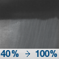 Temperature: 42°F Wind Speed: 6 to 23 mph Wind Direction: SE Forecast: Rain showers after 7pm. Cloudy. Low around 42, with temperatures rising to around 56 overnight. Southeast wind 6 to 23 mph, with gusts as high as 40 mph. Chance of precipitation is 100%. New rainfall amounts between a half and three quarters of an inch possible. |