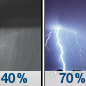 Temperature: 62°F Wind Speed: 8 to 13 mph Wind Direction: W Forecast: Showers and thunderstorms likely before 1pm. Mostly sunny, with a high near 62. Chance of precipitation is 70%. |