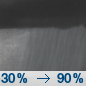 Temperature: 30°F Wind Speed: 10 mph Wind Direction: SW Forecast: A slight chance of rain showers between 7pm and 8pm, then a slight chance of snow showers between 8pm and 9pm, then a chance of rain showers. Mostly cloudy, with a low around 30. Southwest wind around 10 mph. Chance of precipitation is 30%. |