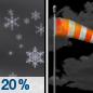 Temperature: 22°F Wind Speed: 15 mph Wind Direction: NW Forecast: A slight chance of snow before 7pm. Mostly clear, with a low around 22. |