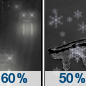 Temperature: 12°F Wind Speed: 14 to 18 mph Wind Direction: SSW Forecast: Rain likely between 9pm and 3am, then a chance of snow between 3am and 4am, then a chance of freezing rain between 4am and 5am, then a chance of snow. Mostly cloudy. Low around 12, with temperatures rising to around 27 overnight. South southwest wind 14 to 18 mph, with gusts as high as 35 mph. Chance of precipitation is 60%. New snow accumulation of less than half an inch possible. Little or no ice accumulation expected. |
