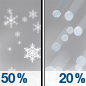 Temperature: 35°F Wind Speed: 3 to 7 mph Wind Direction: S Forecast: A chance of snow before 1pm, then a slight chance of sleet between 1pm and 3pm. Mostly cloudy, with a high near 35. South wind 3 to 7 mph. Chance of precipitation is 50%. New snow accumulation of less than half an inch possible. |