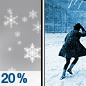 Temperature: 20°F Wind Speed: 2 to 6 mph Wind Direction: S Forecast: Snow likely after 1pm. Mostly cloudy, with a high near 20. South wind 2 to 6 mph. Chance of precipitation is 60%. New snow accumulation of less than half an inch possible. |