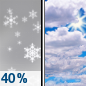 Temperature: 32°F Wind Speed: 8 to 12 mph Wind Direction: SW Forecast: A chance of snow showers before 7am. Mostly cloudy, with a high near 32. Chance of precipitation is 40%. |