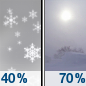 Temperature: 19°F Wind Speed: 7 to 12 mph Wind Direction: SSE Forecast: A slight chance of snow after noon. Mostly cloudy, with a high near 19. South southeast wind 7 to 12 mph. Chance of precipitation is 20%. |