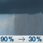 Temperature: 65°F Wind Speed: 6 to 13 mph Wind Direction: W Forecast: Occasional rain showers. Mostly cloudy, with a low around 65. West wind 6 to 13 mph. Chance of precipitation is 90%. New rainfall amounts between a tenth and quarter of an inch possible. |