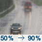 Temperature: 31°F Wind Speed: 2 to 7 mph Wind Direction: SW Forecast: Rain likely. Mostly cloudy, with a low around 31. |