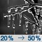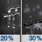 Temperature: 22°F Wind Speed: 3 to 9 mph Wind Direction: SW Forecast: A chance of freezing rain. Cloudy. Low around 22, with temperatures rising to around 30 overnight. Southwest wind 3 to 9 mph. Chance of precipitation is 50%. New snow accumulation of around one inch possible. New ice accumulation of less than half an inch possible. |