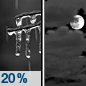 Temperature: 18°F Wind Speed: 10 to 14 mph Wind Direction: W Forecast: A slight chance of freezing rain before midnight. Mostly cloudy, with a low around 18. West wind 10 to 14 mph, with gusts as high as 24 mph. |