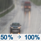 Temperature: 41°F Wind Speed: 8 mph Wind Direction: SSE Forecast: Rain. Cloudy, with a low around 41. South southeast wind around 8 mph. Chance of precipitation is 100%. New rainfall amounts between a half and three quarters of an inch possible. |