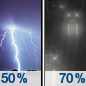Temperature: 50°F Wind Speed: 7 to 10 mph Wind Direction: S Forecast: A chance of showers and thunderstorms before 10pm, then rain likely. Cloudy, with a low around 50. South wind 7 to 10 mph, with gusts as high as 21 mph. Chance of precipitation is 70%. |