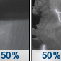 Temperature: 53°F Wind Speed: 8 mph Wind Direction: SW Forecast: A chance of rain showers before 1am, then a chance of showers and thunderstorms. Mostly cloudy, with a low around 53. Chance of precipitation is 50%. |