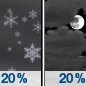 Temperature: 26°F Wind Speed: 6 mph Wind Direction: S Forecast: A slight chance of rain and snow before 10pm. Mostly cloudy, with a low around 26. |