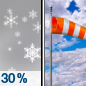 Temperature: 33°F Wind Speed: 9 to 20 mph Wind Direction: S Forecast: A chance of snow. Partly sunny, with a high near 33. South wind 9 to 20 mph, with gusts as high as 31 mph. Chance of precipitation is 40%. New snow accumulation of less than half an inch possible. |