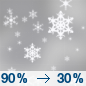 Temperature: 32°F Wind Speed: 5 to 15 mph Wind Direction: NW Forecast: Snow before 1pm. Mostly cloudy, with a high near 32. Chance of precipitation is 90%. New snow accumulation of 2 to 4 inches possible. |