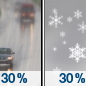 Temperature: 25°F Wind Speed: 2 to 6 mph Wind Direction: N Forecast: A chance of snow. Cloudy. High near 25, with temperatures falling to around 23 in the afternoon. Wind chill values as low as 9. North wind 2 to 6 mph. Chance of precipitation is 50%. New snow accumulation of around one inch possible. |