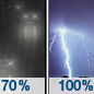 Temperature: 57°F Wind Speed: 20 to 25 mph Wind Direction: SW Forecast: Rain and a slight chance of thunderstorms before 7am, then showers and thunderstorms between 7am and 1pm. Partly sunny, with a high near 57. Southwest wind 20 to 25 mph, with gusts as high as 45 mph. Chance of precipitation is 100%. New rainfall amounts between a half and three quarters of an inch possible. |