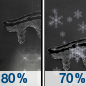 Temperature: 0°F Wind Speed: 14 to 35 mph Wind Direction: WSW Forecast: Rain likely before 7pm, then rain and freezing rain likely between 8pm and 2am, then a chance of snow between 2am and 3am, then snow likely and areas of blowing snow. Cloudy. Low around 0, with temperatures rising to around 18 overnight. West southwest wind 14 to 35 mph, with gusts as high as 51 mph. Chance of precipitation is 80%. New snow accumulation of less than one inch possible. Little or no ice accumulation expected. |