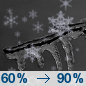 Temperature: 13°F Wind Speed: 10 to 21 mph Wind Direction: ENE Forecast: A chance of snow before 8pm, then a chance of freezing rain between 8pm and 9pm, then snow likely between 9pm and midnight, then snow and a slight chance of freezing rain between midnight and 3am, then snow and patchy blowing snow between 3am and 5am, then snow and patchy blowing snow and a slight chance of freezing rain. Cloudy. Low around 13, with temperatures rising to around 26 overnight. East northeast wind 10 to 21 mph, with gusts as high as 36 mph. Chance of precipitation is 90%. New snow accumulation of 1 to 2 inches possible. Little or no ice accumulation expected. |