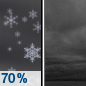 Temperature: 14°F Wind Speed: 7 mph Wind Direction: NE Forecast: Snow likely before midnight. Cloudy. Low around 14, with temperatures rising to around 16 overnight. Wind chill values as low as 7. Northeast wind around 7 mph. Chance of precipitation is 70%. New snow accumulation of 1 to 2 inches possible. |