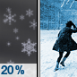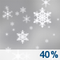 Temperature: 23°F Wind Speed: 6 to 9 mph Wind Direction: W Forecast: A chance of snow. Mostly cloudy, with a high near 23. Chance of precipitation is 40%. |